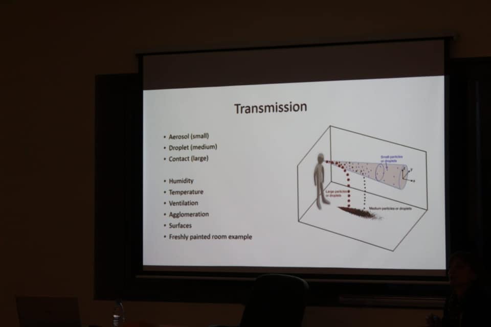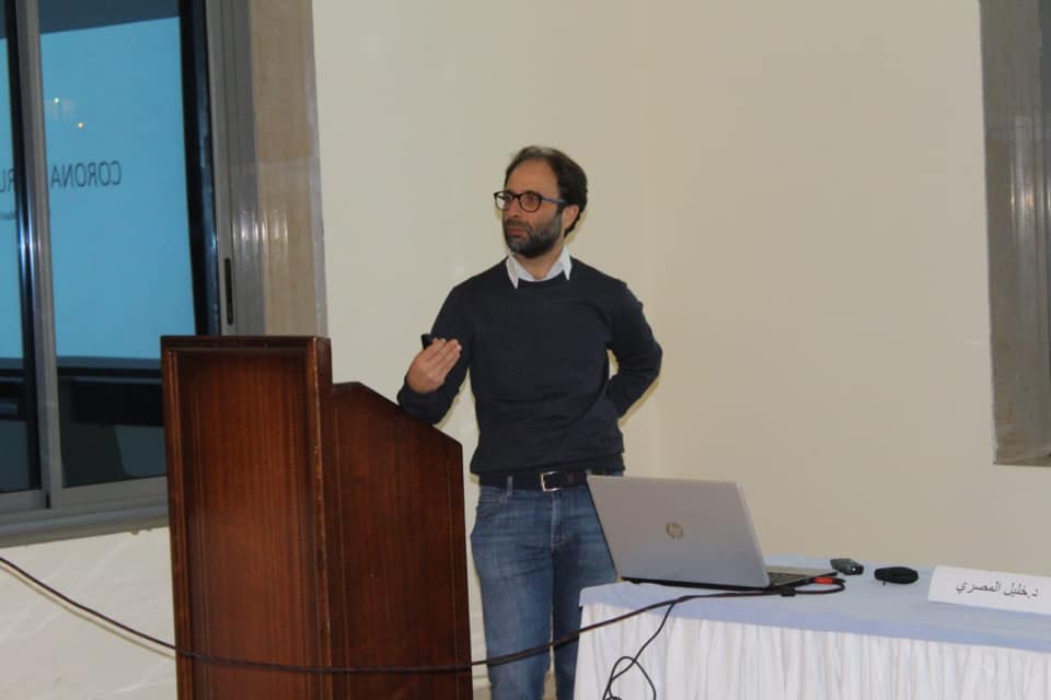 اما الاخصائي المحاضر في علم الجراثيم الدكتور خليل المصري فقد شرح باسهاب تاريخ الفيروز وطريقة انتقاله الى الانسان وخصائصه وسبل الوقاية منه! وشدد على المسؤولية الفردية للوقاية والحد من انتشار المرض الذي اضحى وباءً عالميا لا يمكن محاربته الا بالوعي واتخاذ الاجراءات الاحترازية ريثما يتوصل العلم الى دواء يقضي عليه. ودعا الى عدم الهلع مع العمل بالارشادات وتجنب المصافحة والتجمعات.
