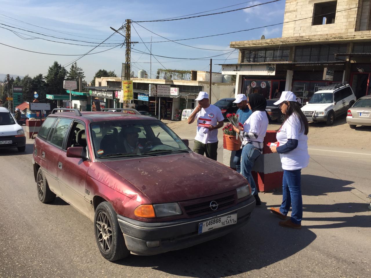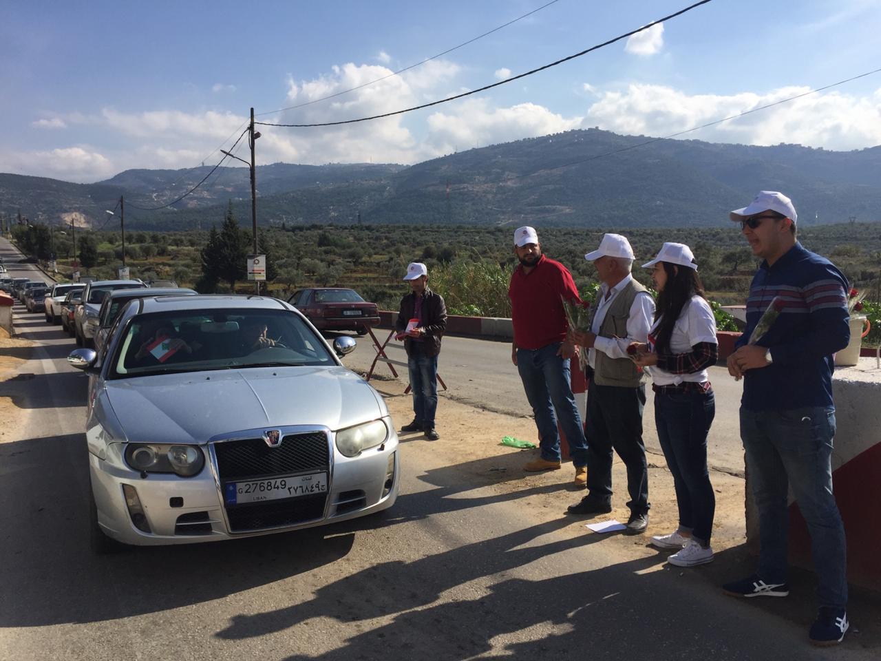 وتوزع القائمون بالنشاط على جانبي الطريق، نزولاً وصعوداً، حيث كان سعدية ويعاونه رئيس بلدية بخعون زياد جمال يمتحنون المارة ويسألونهم إذا ما كانوا يحفظون النشيد الوطني اللبناني، وأي مواطن كان حافظاً للنشيد غيباً نال مبلغ مئة ألف ليرة لبنانية، في مبادرة رمزية من إتحاد البلديات تهدف إلى حثّ المواطنين على حفظ نشيدهم الوطني وتمسكهم بلبنان.