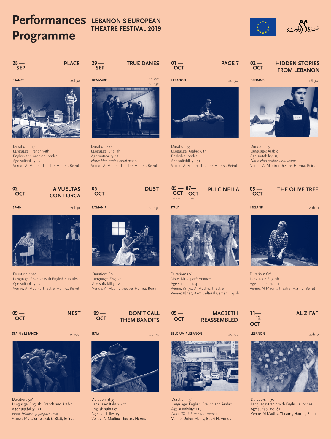 تقدم بعثة الاتحاد الأوروبي في لبنان بالتعاون مع مسرح المدينة مهرجان المسرح الأوروبي في لبنان لعام 2019