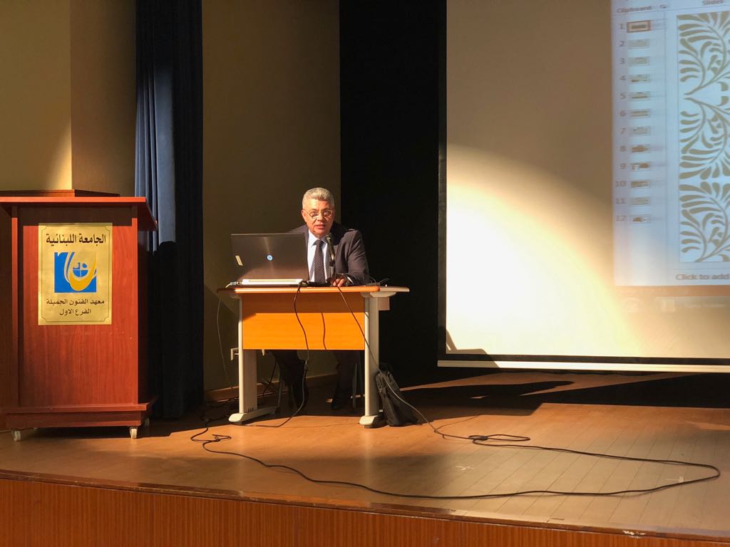 سعدية محاضرا في الجامعة اللبنانية في بيروت عن التخطيط الاستراتيجي كأداة لتحسين سبل العيش وتكييف أهداف التنمية المستدامة.