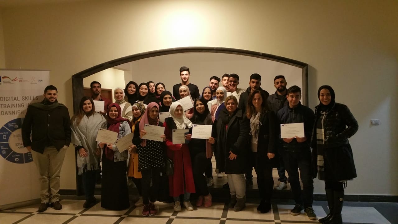 أقام اتحاد بلديات الضنية حفل تخرج الدفعة الأولى للطلاب المشاريكن في دورة المهارات الرقمية الأساسية التي تقيمها جمعية DOT بالشراكة مع اتحاد بلديات الضنية ومكتب التعاون الالماني GIZ بحضور ممثلين عن كل من الشركاء الثلاثة، حيث تم تخريج زهاء 75 طالبا وكانت الدورة تهدف الى تعليم الشباب والنساء على استعمال الكمبيوترواكتساب المهارات الرقمية وحسن استعمال مواقع التواصل الاجتماعي وقد تم توزيع الشهادات على المتدربين بعد تقديم عرض لمشاريعهم التي لخصوا فيها ماتعلموه خلال الدورة وقد تنوعت وجاءت على قدر الجهد المبذول.