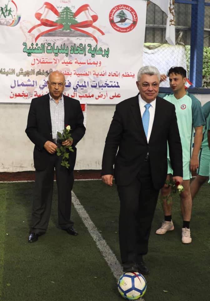بمناسبة العيد 75 للإستقلال وبرعاية إتحاد بلديات الضنية إفتتح إتحاد أندية الضنية بطولة شهداء الجيش اللبناني حيث جمعت مباراة الإفتتاح ممثل لواء المشاة العاشر في الجيش اللبناني مع منتخب الضنية للميني فتبول على أرض ملعب الريان بخعون ألقى خلالها رئيس الإتحاد كلمة بالمناسبة تحدث فيها عن سلسلة النشاطات بمناسبة الإستقلال مع الجمعيات وإتحاد أندية الضنية قائلاً أنها من أجمل النشاطات خاصة أنها تحمل أسم بطولة شهداء الجيش اللبناني والتي تعني لنا شهادة هذه المؤسسة الكثير فهي التي تصون الوطن بأرواحها وتحافظ على كيانه ووحدته متوجهاً لقيادتها ضباطاً ورتباء وأفراداً بكل الحب والإحترام والتقدير والإمتنان لتضحياتهم الجسام في سبيل صون أمن الوطن وتوجه بالشكر لرؤساء الأندية وخاصة إتحاد أندية الضنية على نشاطهم والعمل والتنسيق مع إتحاد البلديات في هذه الفترة القصيرة لإنجاح بطولة شهداء الجيش اللبناني لمنتخبات الميني فتبول في الشمال وتوجه لكل الأندية الرياضية في الشمال وكل لبنان بالتحية لكل نشاط يقومون به لتوطيد معنى الإنتماء للوطن الجامع لكل أبنائه واختتم سعادته بالقول نجتمع اليوم في بلدة بخعون القلب النابض للضنية من على أرض ملعب الريان متوجهاً بالتحية من الضنية لكل لبنان وجميع أطيافه والمواطن في لبنان واختتم كلنا للوطن